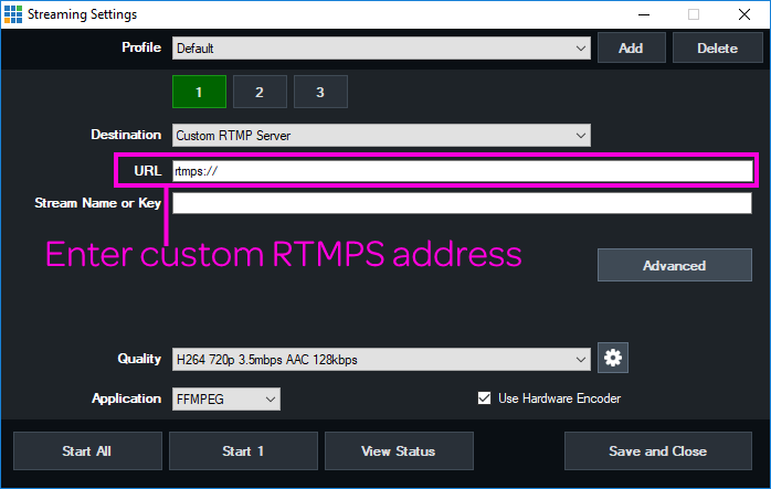 Using RTMPS with vMix